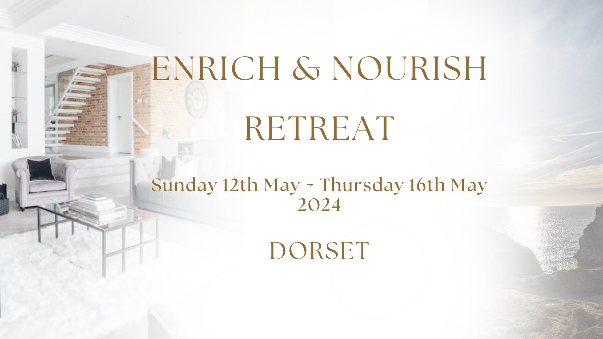 We will come together at the Luxurious House, Weymouth, Dorset, UK, from 3 pm Sunday 12th May 2024 until Thursday midday 16th May 2024.